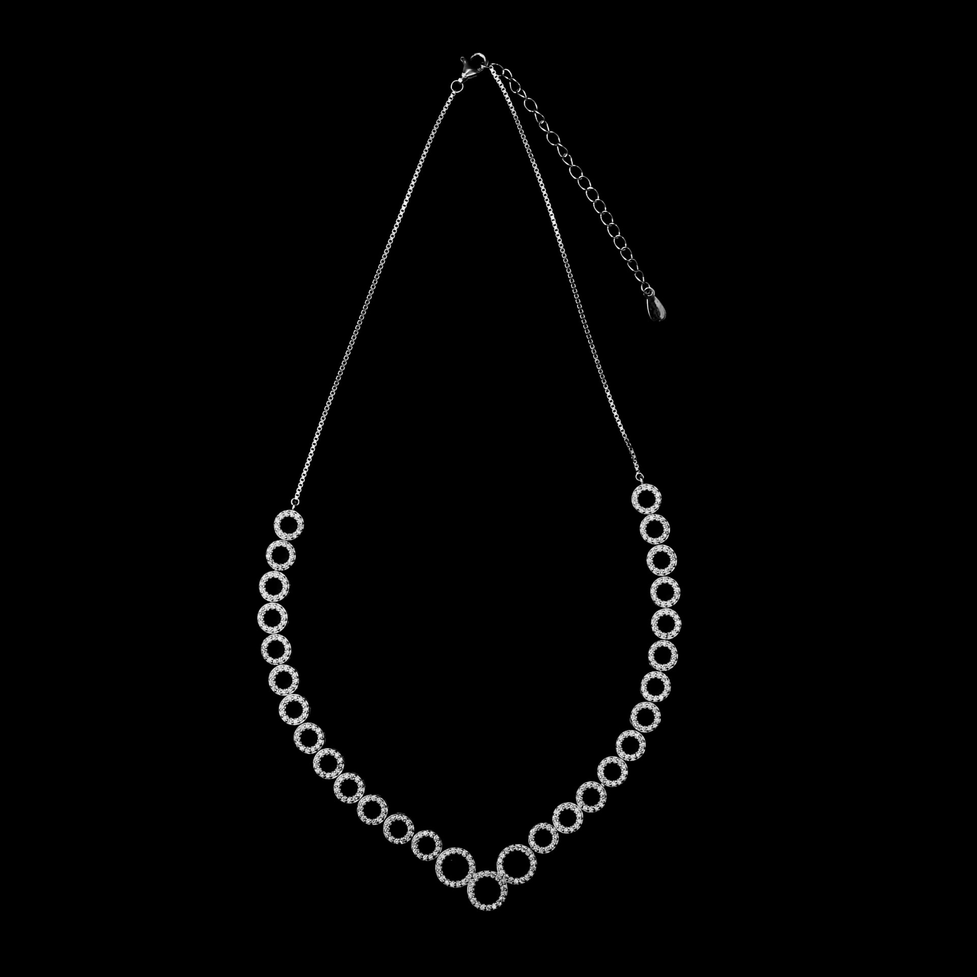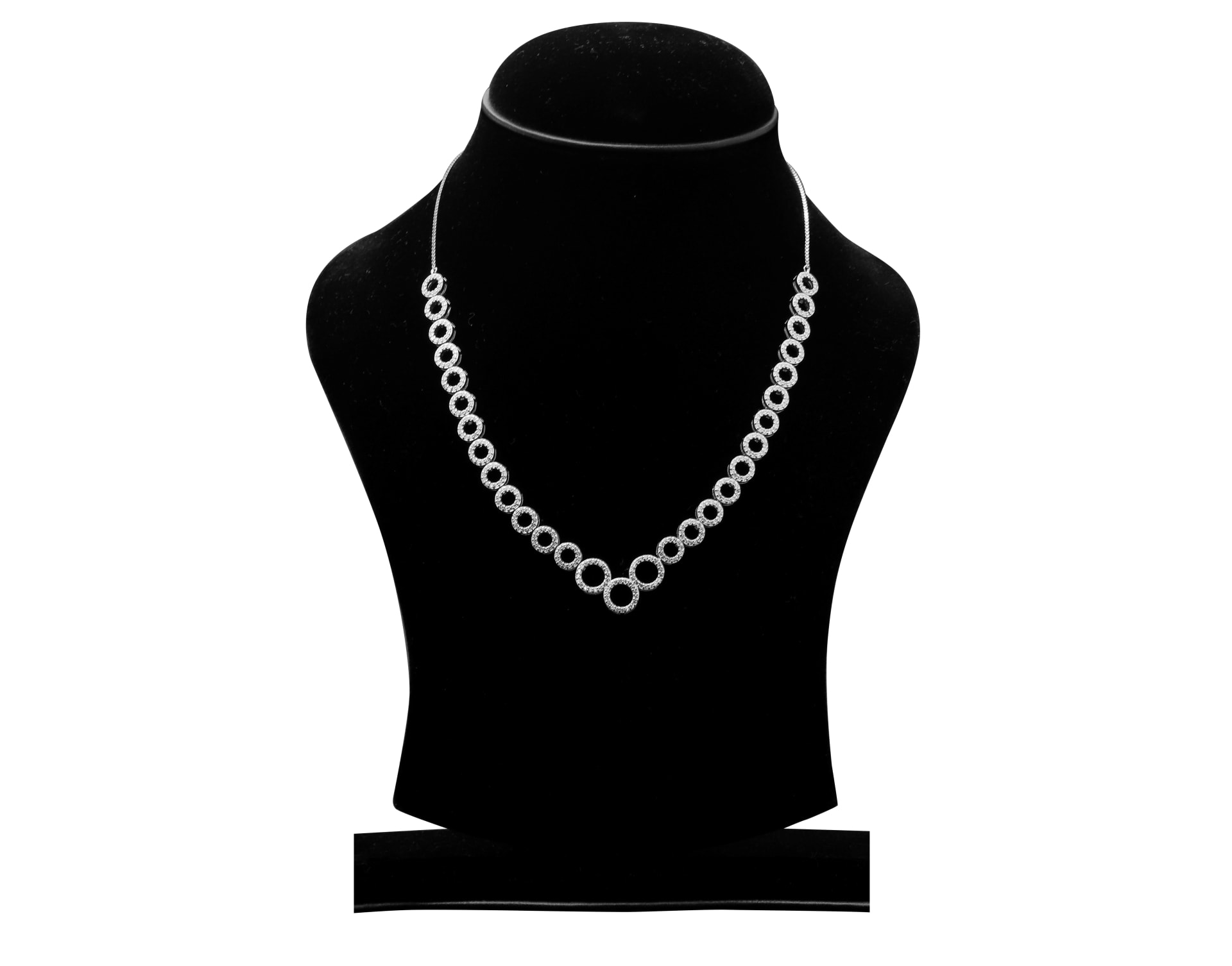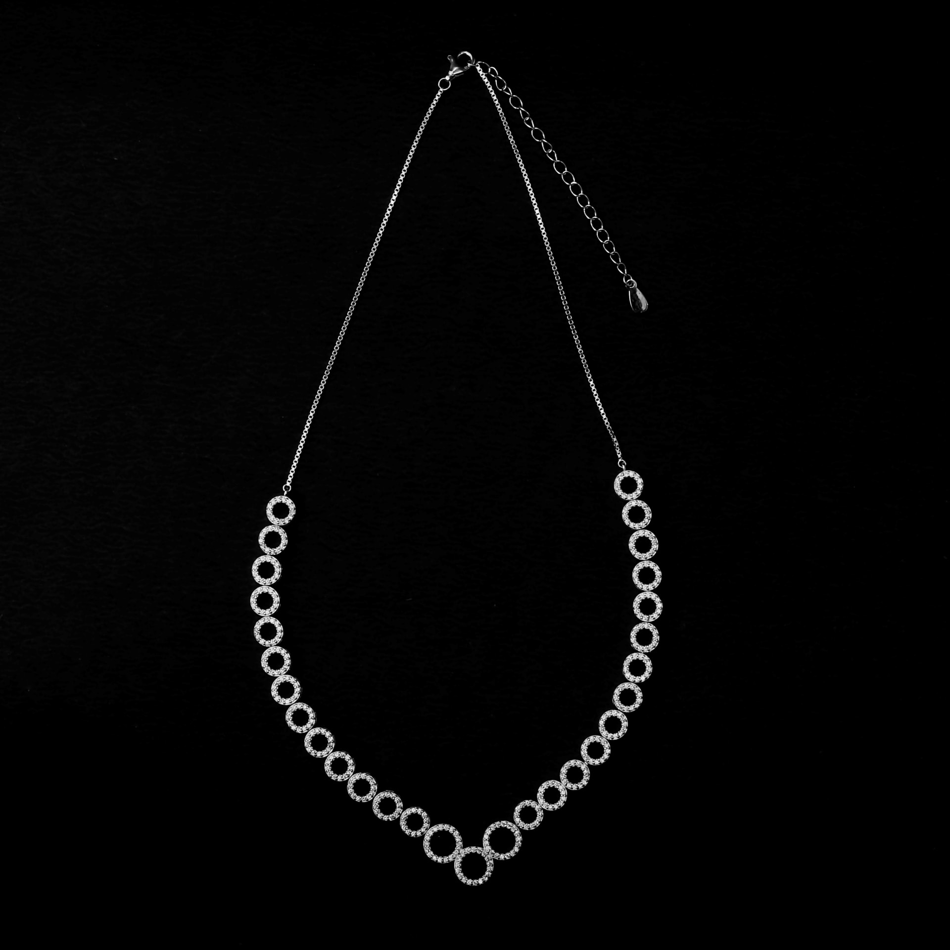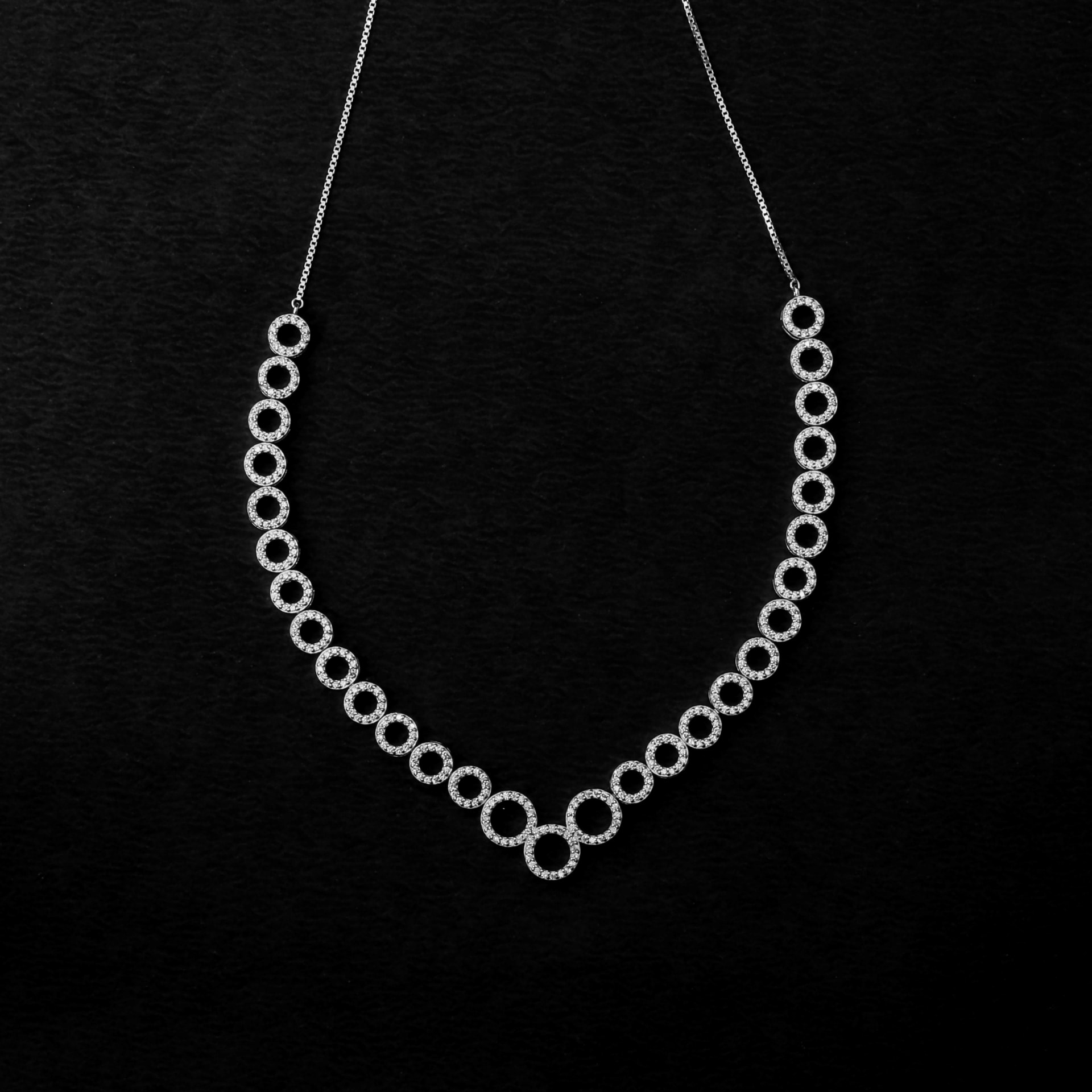 Geometrical Designs seem to be all the rage these days. That’s what the cool kids on Instagram are saying and we heard them. Hollow Circles in graduating sizes studded with Cubic Zirconia make this necklace. The back is designed to ensure comfort while wearing and the necklace size is made adjustable, so wear short or long. Fastened with a Fishlock for maximum security.