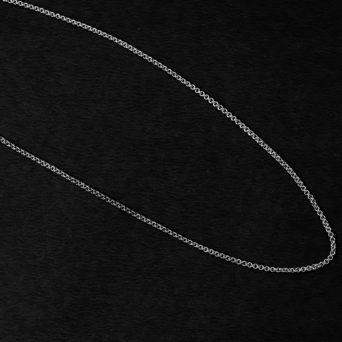 Comfort around the neck while having a bit of weight. The Rope-Link Silver Chain is snug and comforting. Heavy Pendants are the go-to for this chain. Coupling this chain with a heavy pendant enhances the overall look while the chain is also meant to look good when worn standalone. An oxidized Silver finish completes this truly urban look.