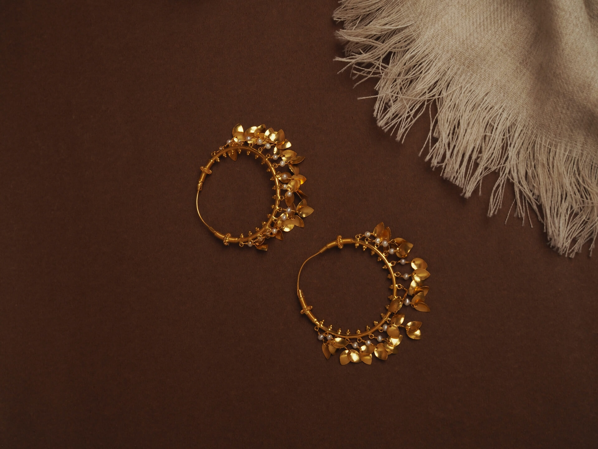 Inspired by the jewellery adored and adorned by Punjabi women, the Patiala Patta Bali is flashy and minimalist at the same time. The inclusion of small pearls furthers the appeal of the piece.